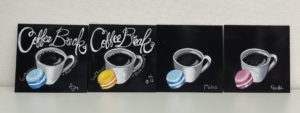 チョークアート、「絵心が無いと、なんだかバランス悪くて下手なんだけど」って話をよく聞きます。絵が苦手でも下絵にちょっとした方法で、描くことでサンプルに近い絵が描けるんです。一度描けると、やる気も出るものです。ちょっと邪道な方法も使いながら1時間で仕上げます。文字は下絵通りに描くことで、カフェっぽい感じに仕上がります。